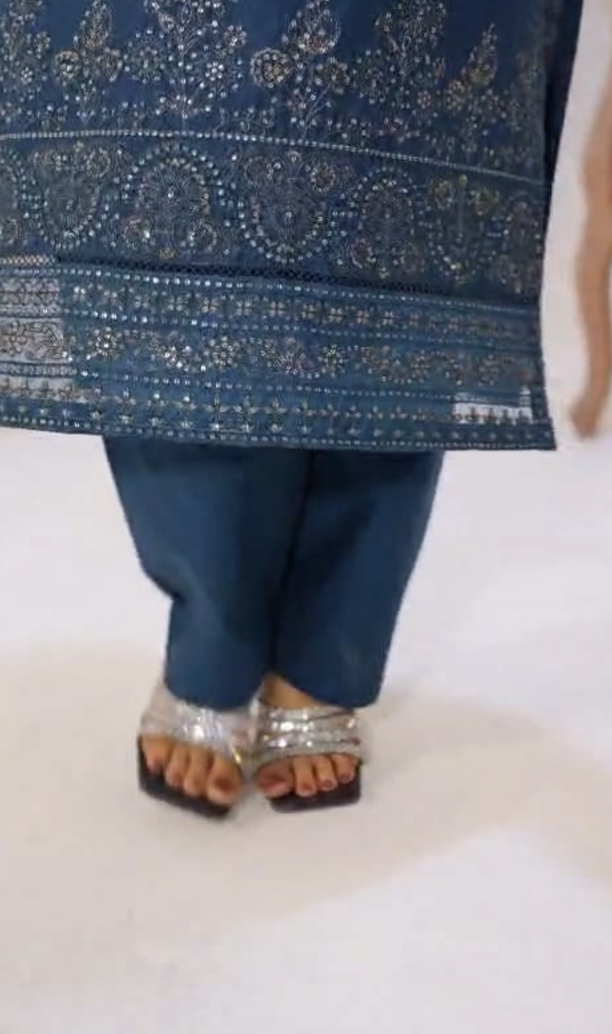 The matching trouser complements the shirt with coordinated embroidered accents that complete the outfit’s cohesive appearance. Paired with a beautifully patterned dupatta, the ensemble brings a balanced blend of sophistication and winter comfort — ideal for daytime gatherings, outings, or stylish winter routine wear.