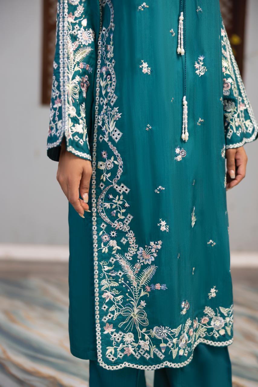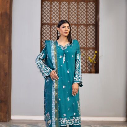 HL-604 | Teal Blue Embroidered Viscose Suit – Winter Luxury Collection