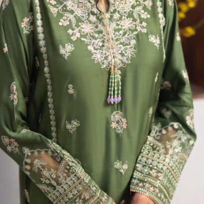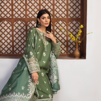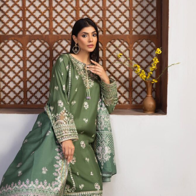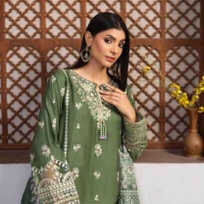 Be the first to review “HL-606 | Classic Green Embroidered Viscose Suit – Winter Collection”