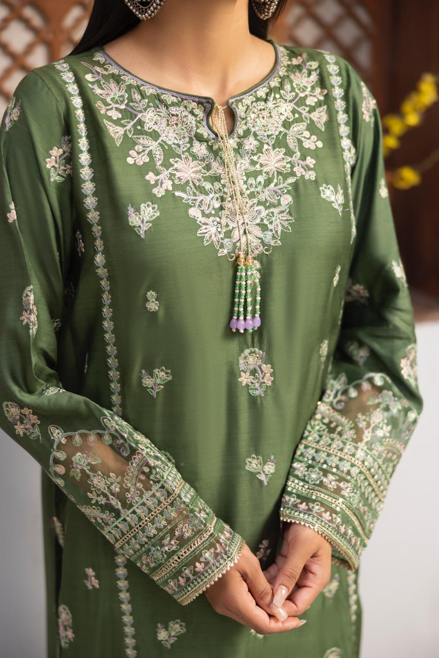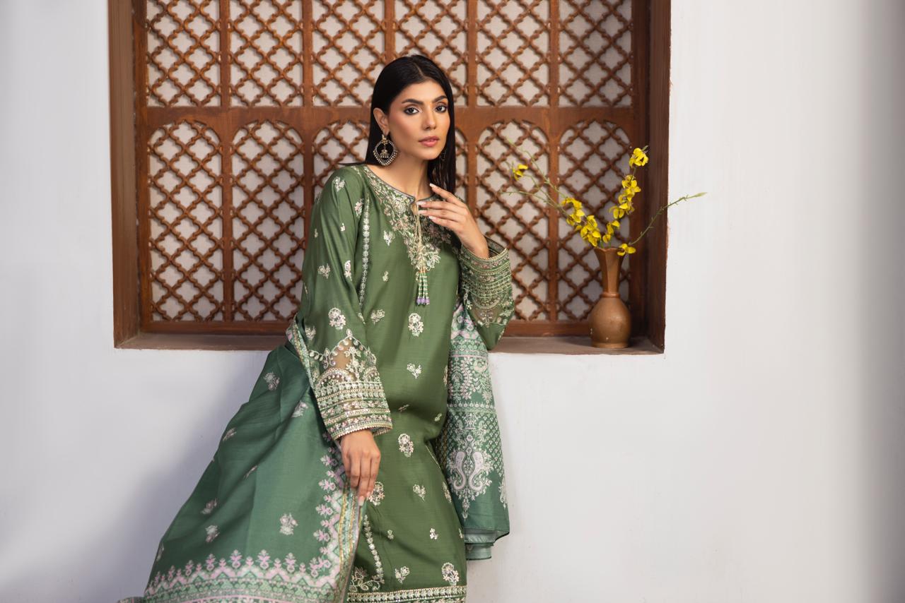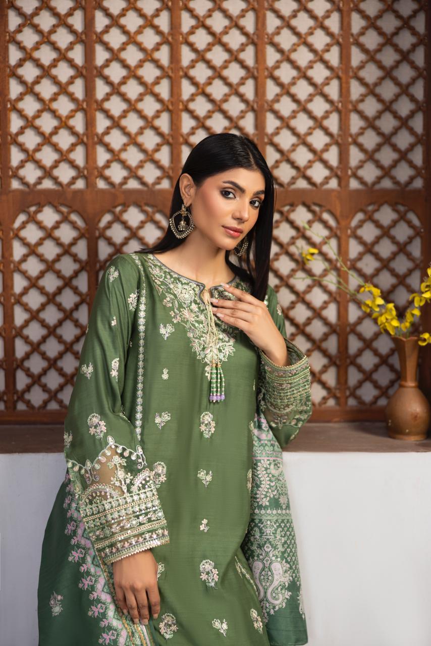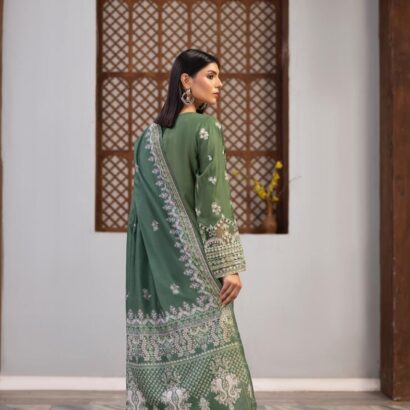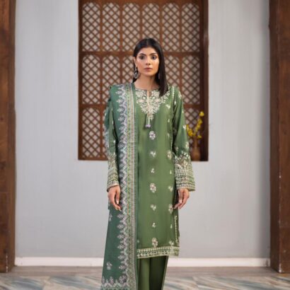 HL-606 | Classic Green Embroidered Viscose Suit – Winter Collection