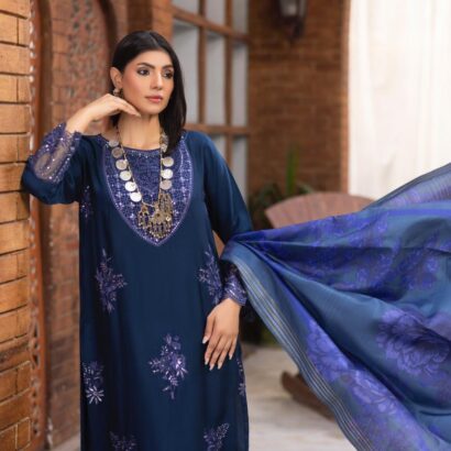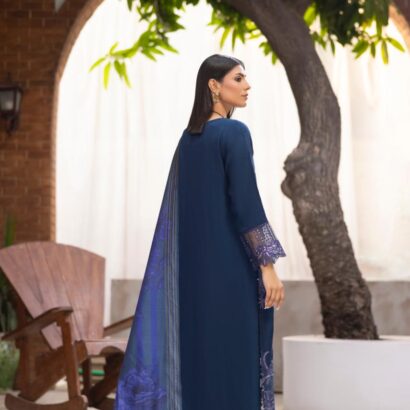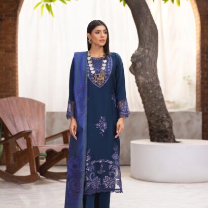 HL-607 | Navy Blue Embroidered Viscose Suit – Winter Luxury Collection