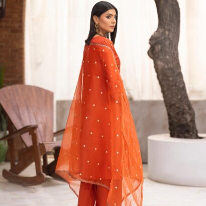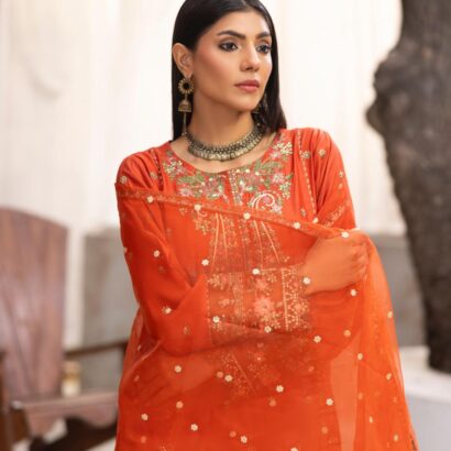 HL-608 | Burnt Orange Embroidered Viscose Suit – Winter Luxury Collection